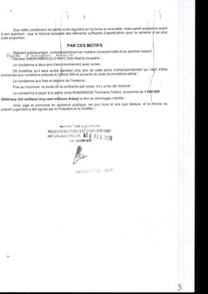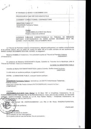 Les jugements rendus par les magistrats malgaches violant la loi au bénéfice de RANARISON Tsilavo